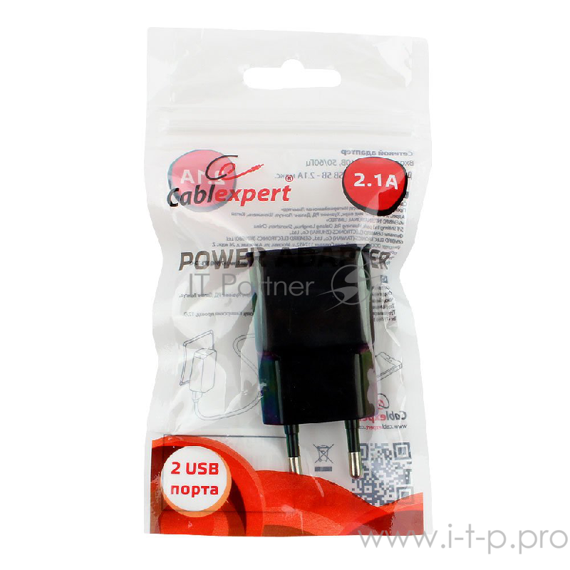 Характеристики Адаптер питания Cablexpert MP3A-PC-12 100/220V - 5V USB 2 порта, 2.1A, черный