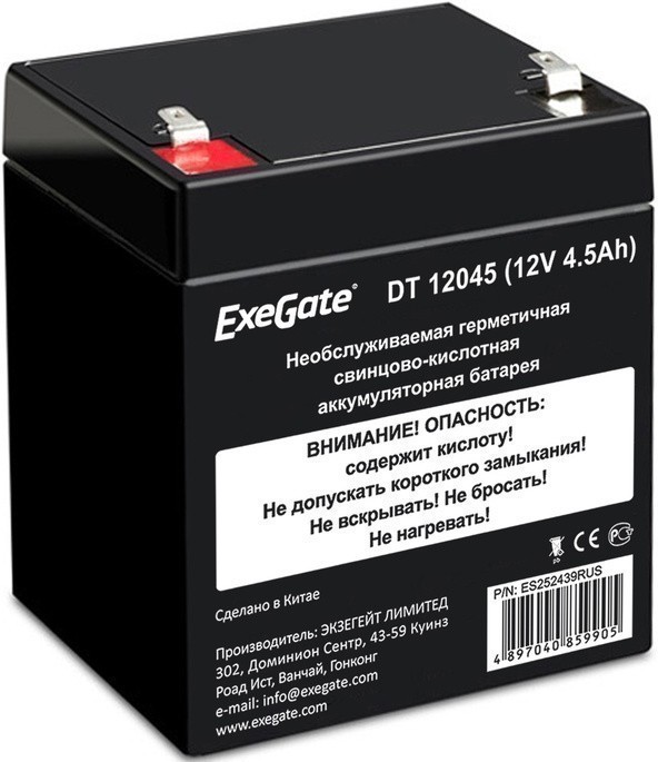 Характеристики Аккумуляторная батарея Exegate DT 12045