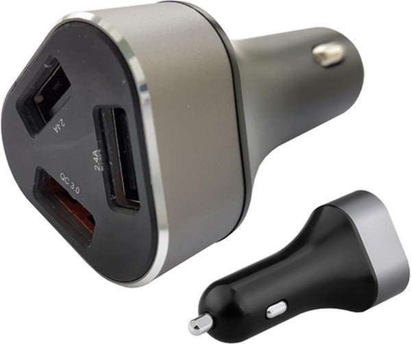 Особенности: Одновр. зарядка до 3 устройств. 2 выхода USB с поддержкой Smart Charge (SC) + 1 выход USB с поддержкой Qualcomm Quick Charge 3.0 (QC). Выходной ток: SC 5В и до 2.4А на каждый выход, QC 3.6-6.5В/3А, 6.5-9В/2А, 9-12В/1.5А