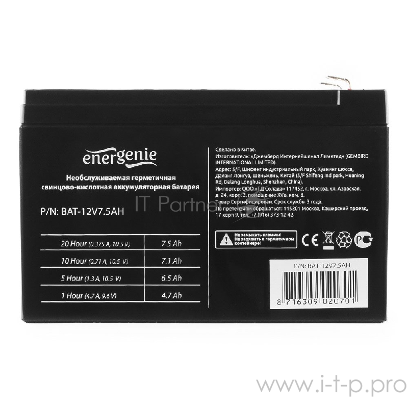 Батарея для ИБП Gembird Аккумулятор для Источников Бесперебойного Питания BAT-12V7.5AH