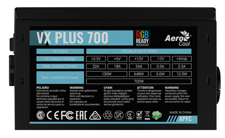 Описание Блок питания 700W AeroCool VX-700 PLUS RGB
