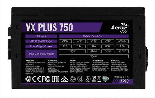 Характеристики Блок питания 750W AeroCool VX-750 PLUS