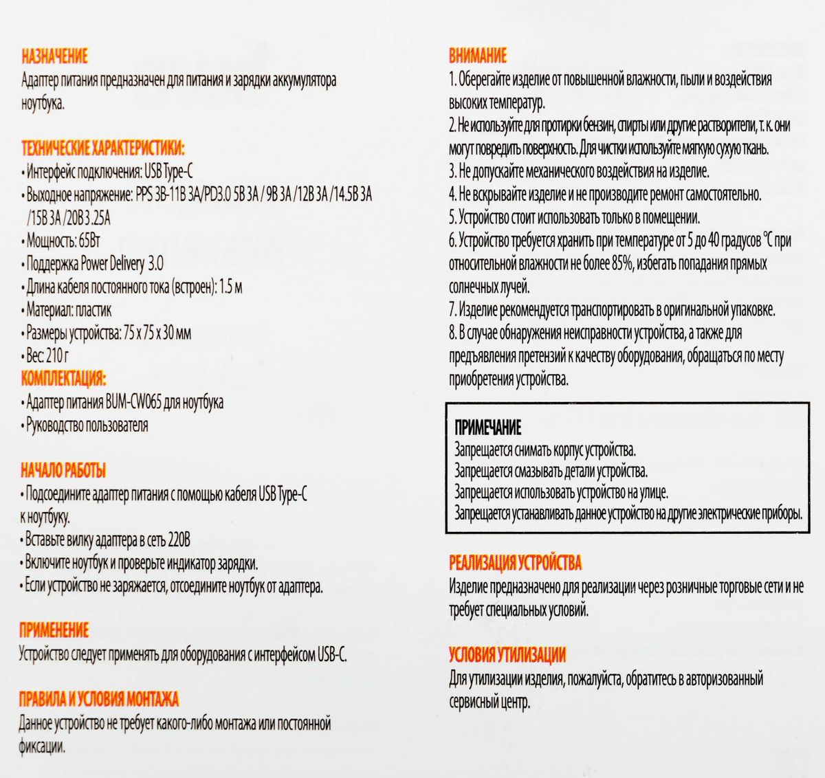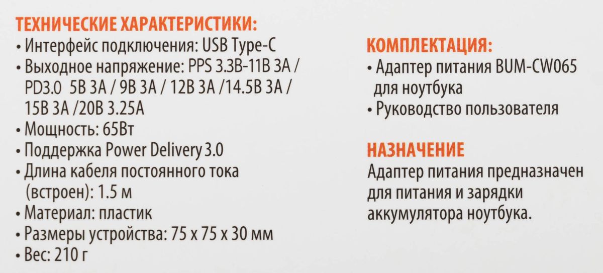 Характеристики Блок питания Buro BUM-СW065 автоматический 65W 5V-20V 3.25A от бытовой электросети