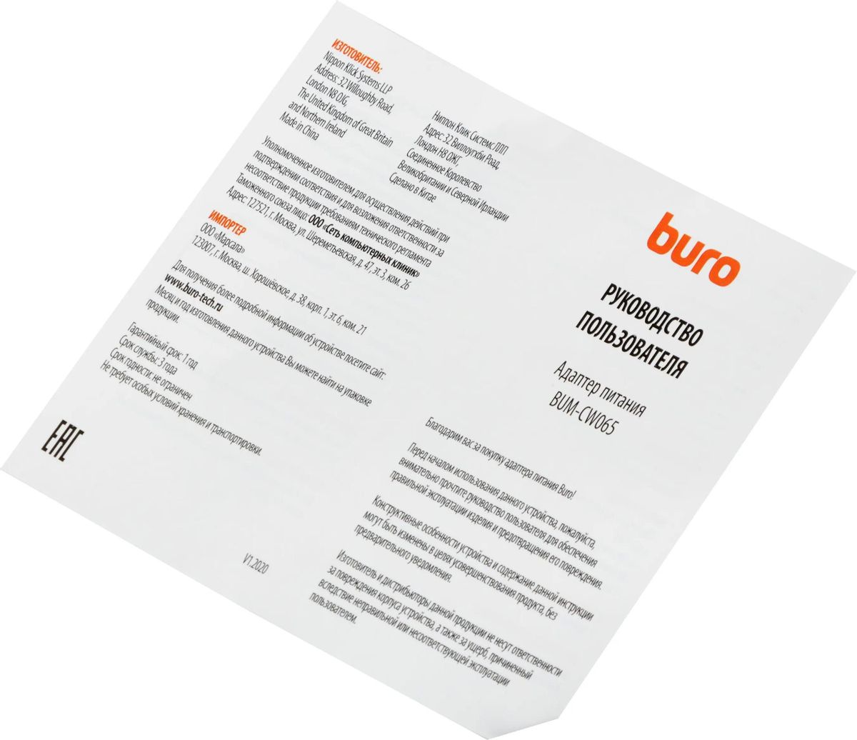 Блок питания Buro BUM-СW065 автоматический 65W 5V-20V 3.25A от бытовой электросети
