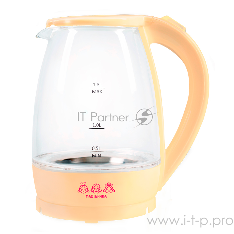 Характеристики Чайник электрический Мастерица ЕК-1801G, ваниль, 1,8л, стекло, 1850 Вт