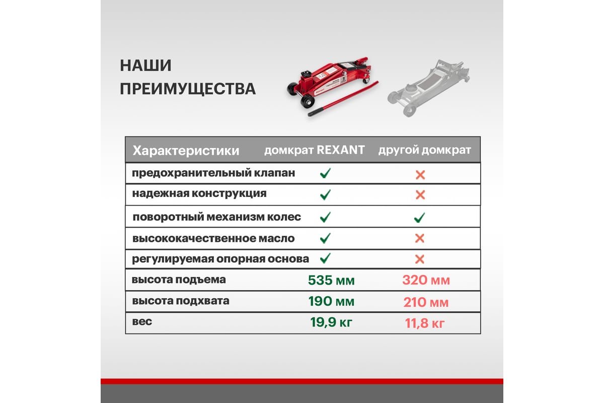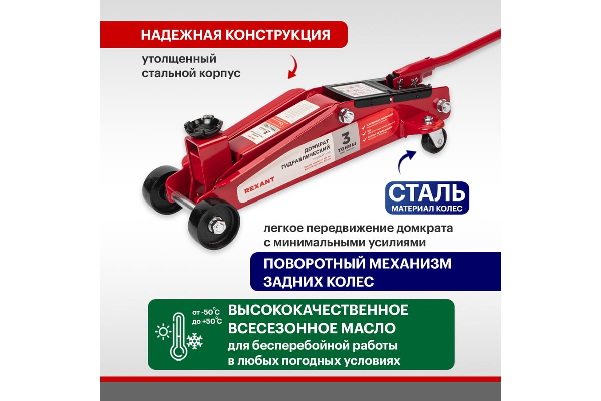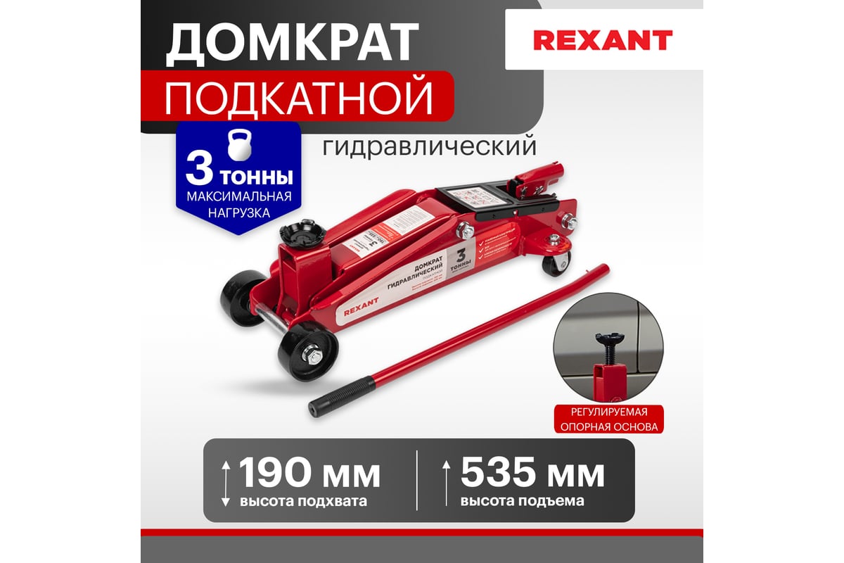 Характеристики Домкрат гидравлический подкатной 3т с высоким подъемом, SUV REXANT