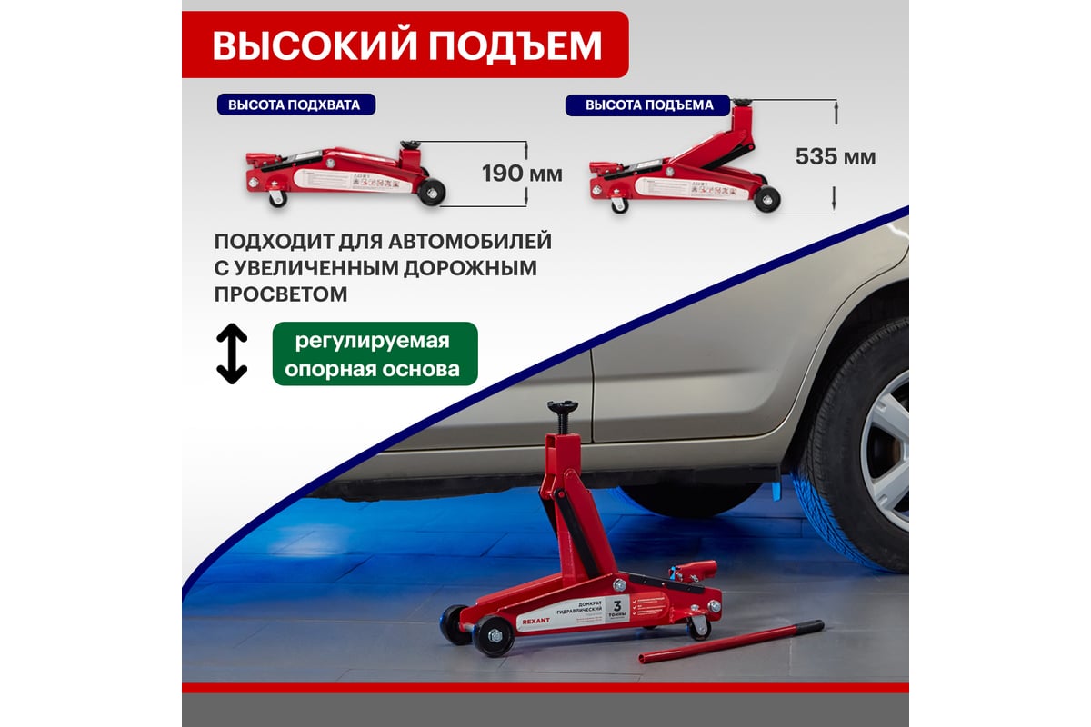 Домкрат гидравлический подкатной 3т с высоким подъемом, SUV REXANT