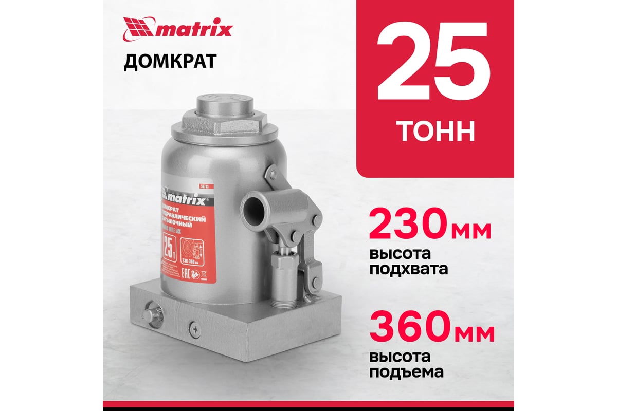 Домкрат MATRIX 50733 бутылочный 25т h подъема 240–375мм