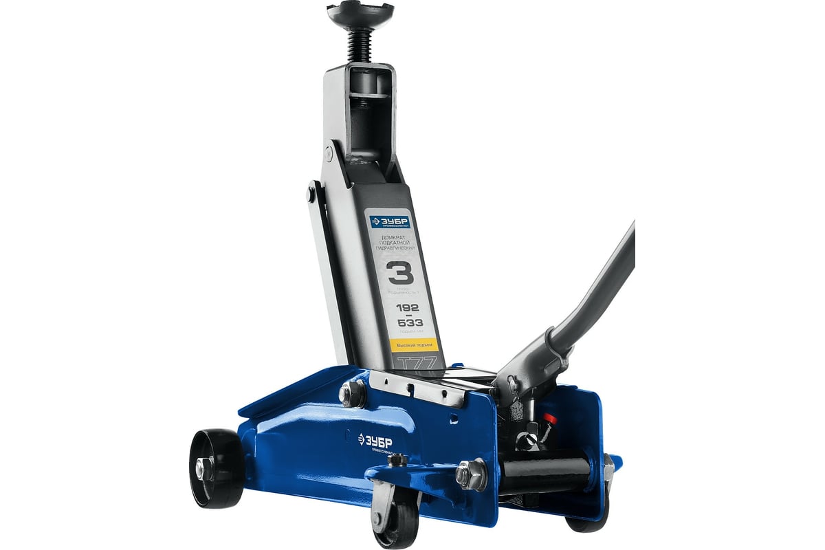 Домкрат ЗУБР 43055-3 гидравлический подкатной t77 3т 192-533мм профессионал