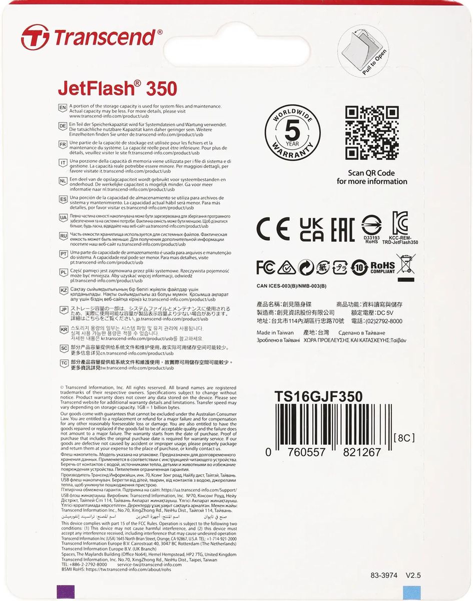 Характеристики USB Flash накопитель 16Gb Transcend JetFlash 350 Black (TS16GJF350)
