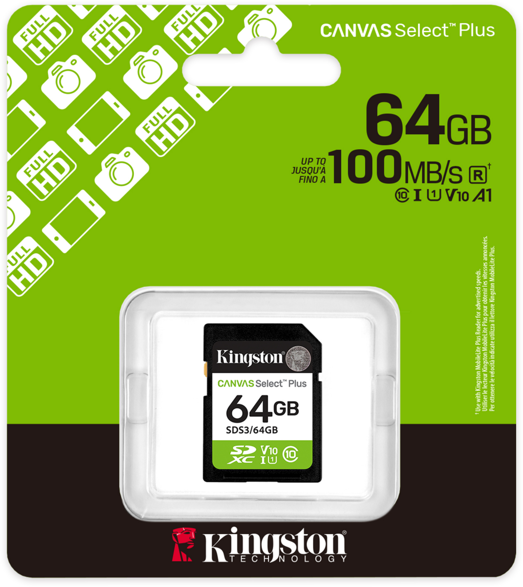 Характеристики Флеш карта SDXC 64GB Kingston SDS3/64GB Canvas Select Plus w/o adapter