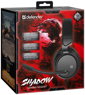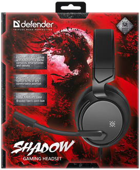 Игровая гарнитура Defender Shadow черный, софттач, провод 1.6 м