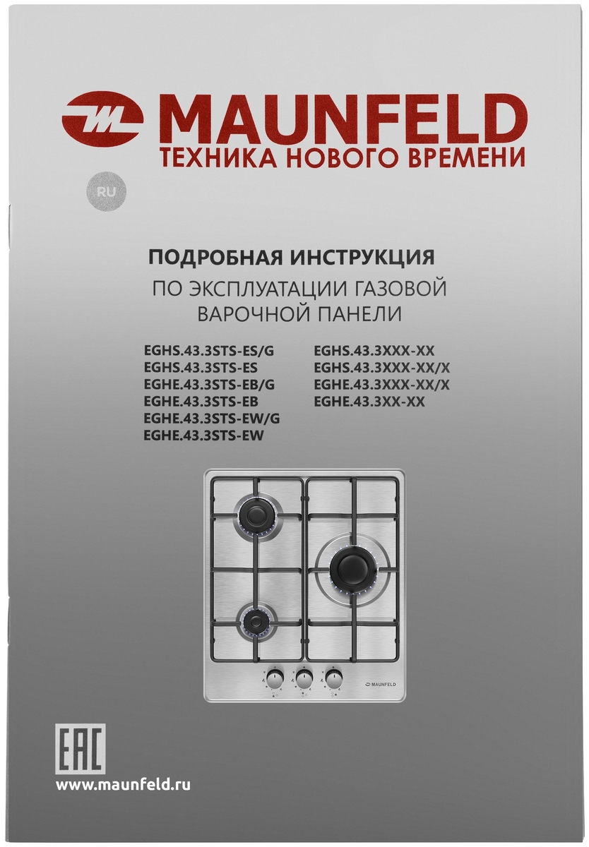 Характеристики Газовая варочная панель MAUNFELD EGHE.43.3STS-EB, черный