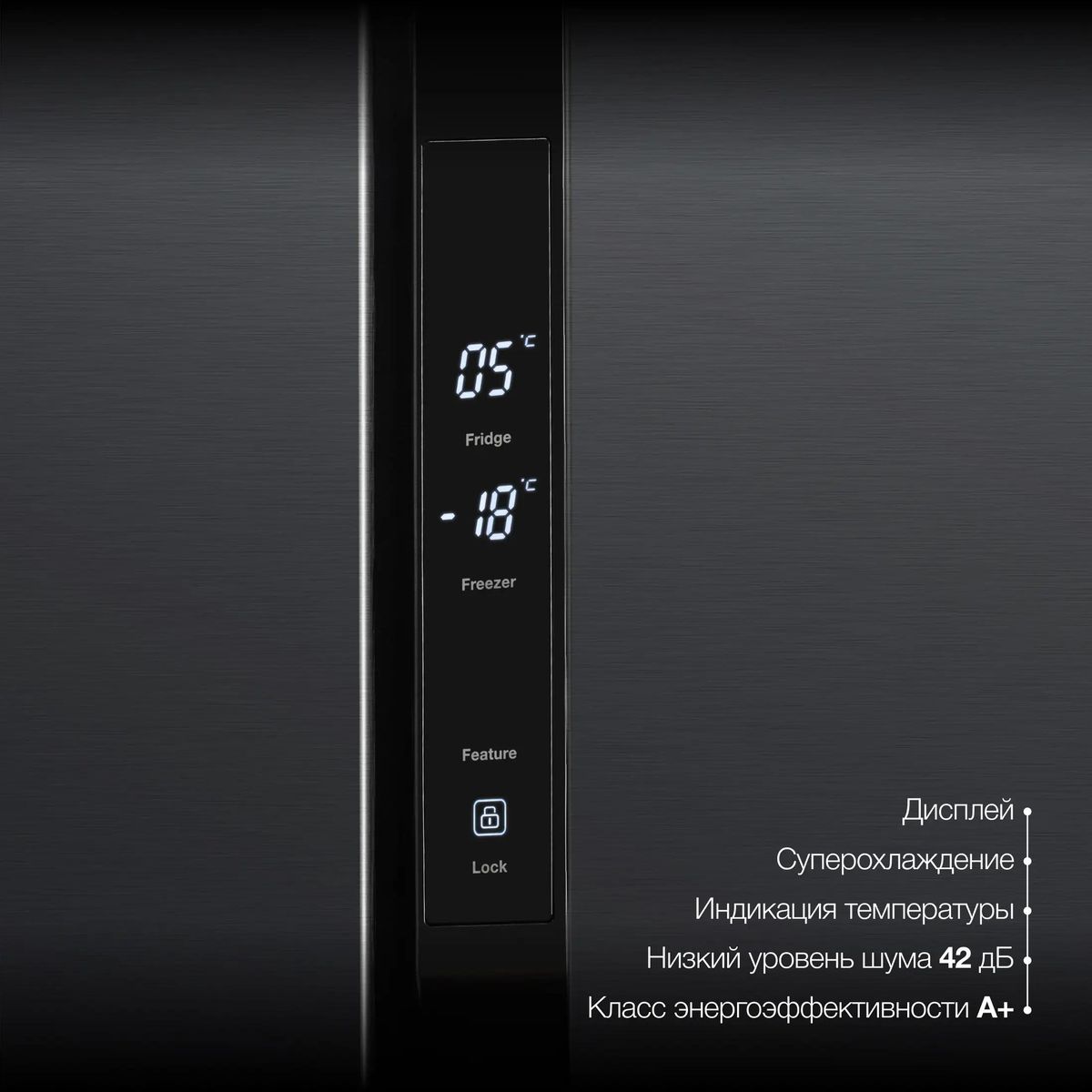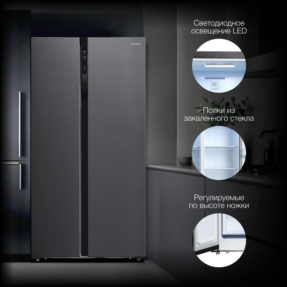 Холодильник Hyundai CS5003F черная сталь двухкамерный Side by Side 331/165л морозилка сбоку