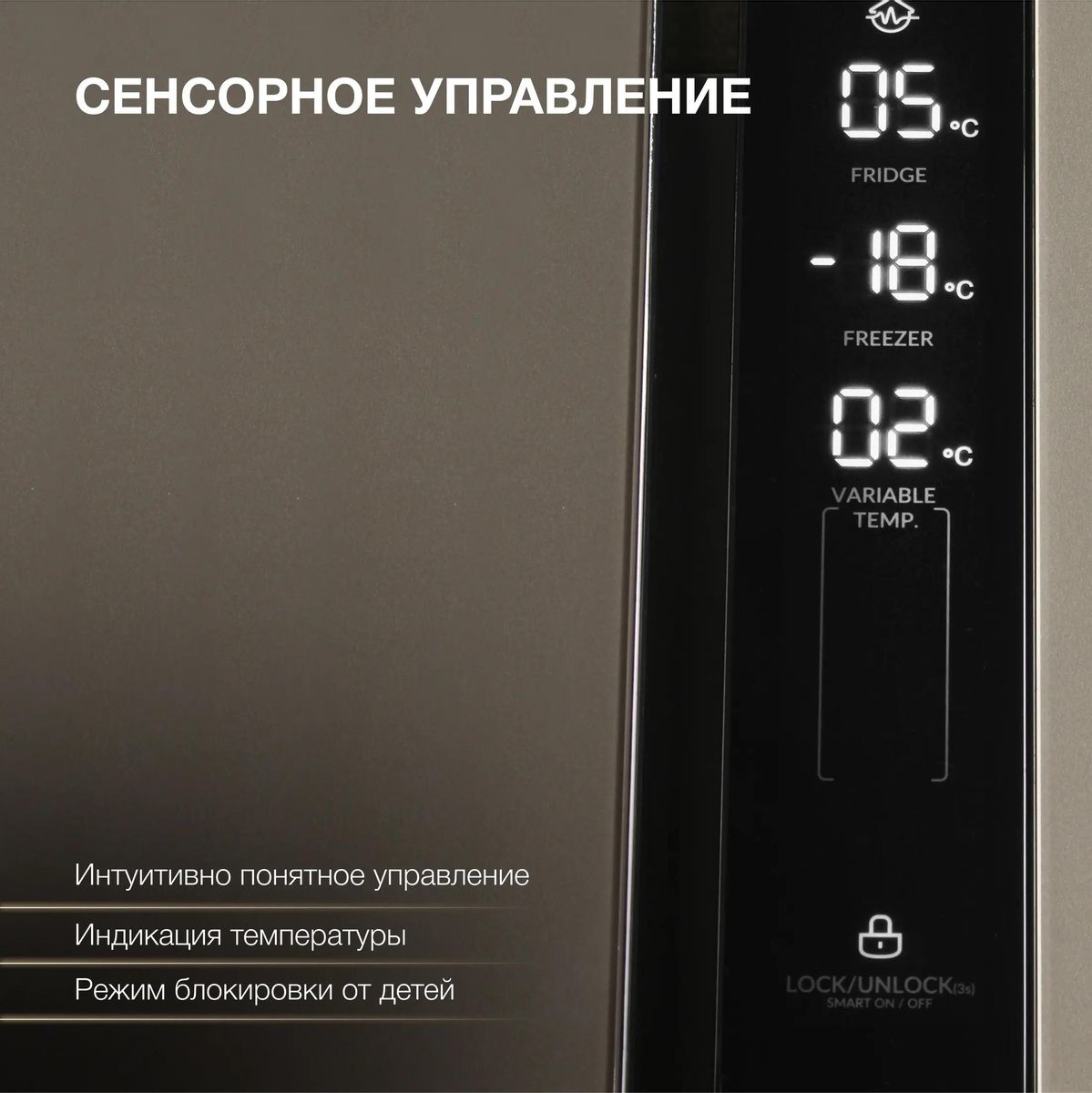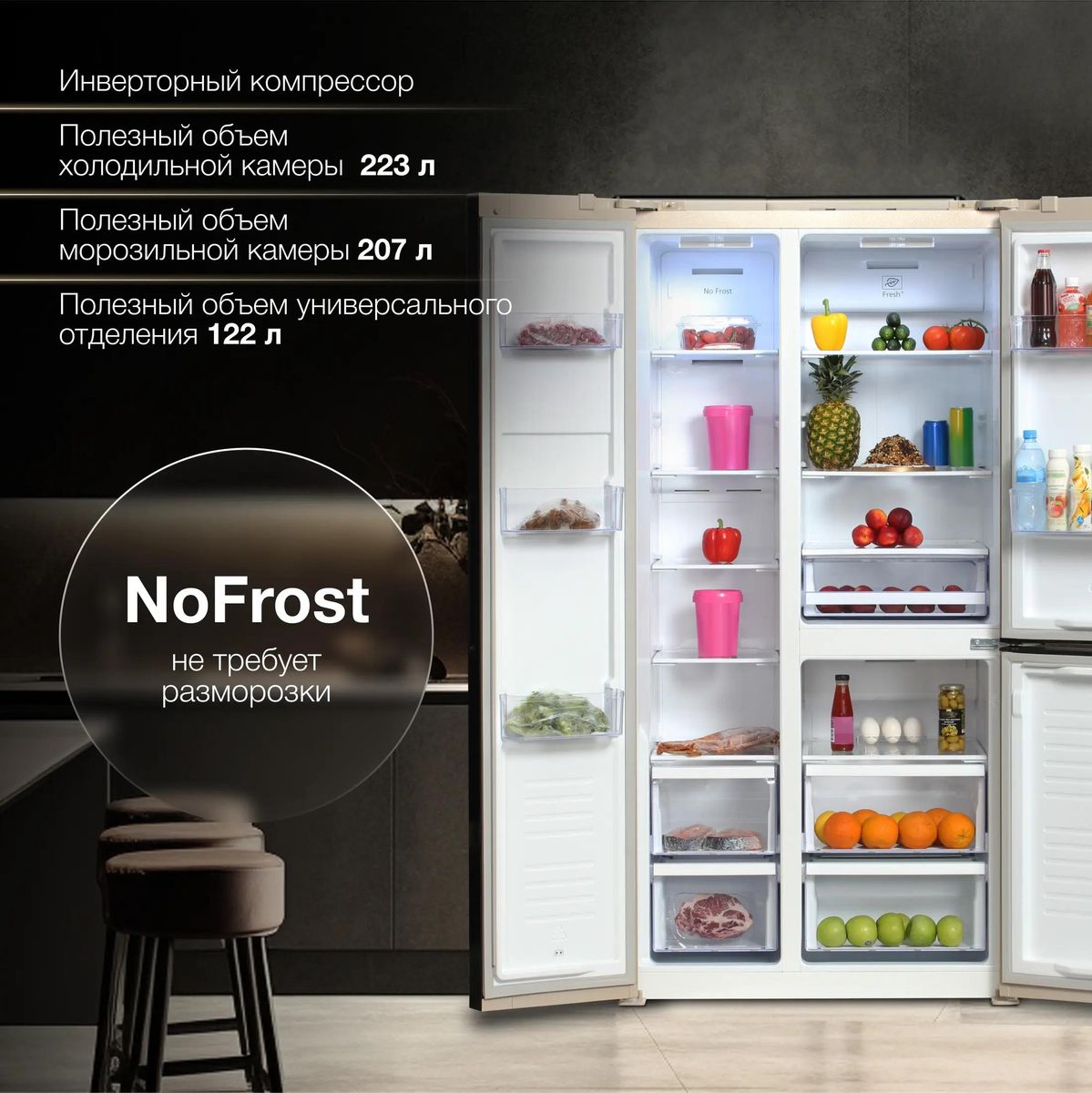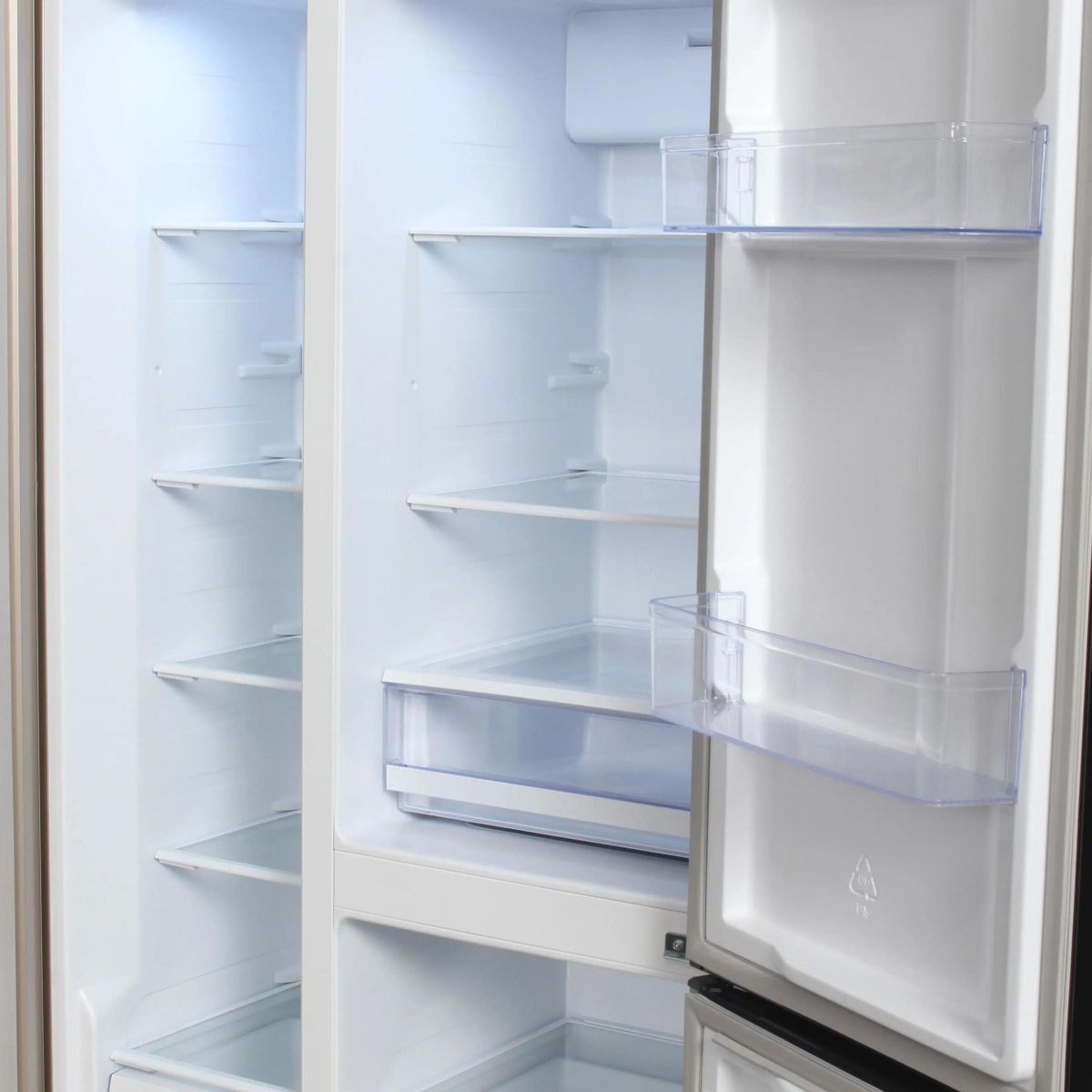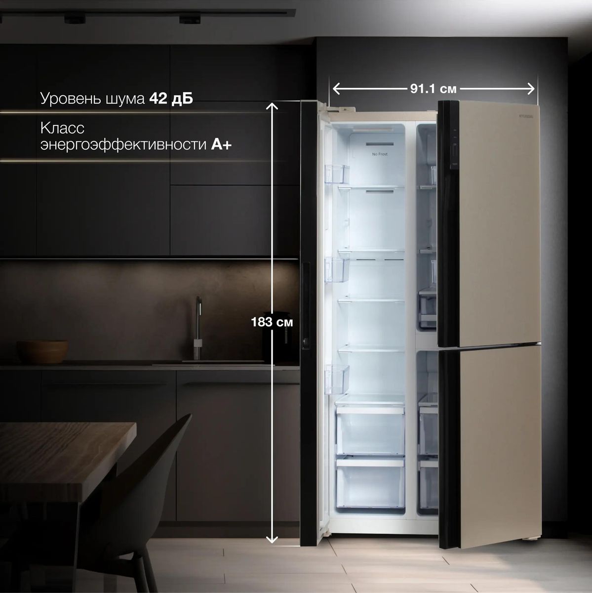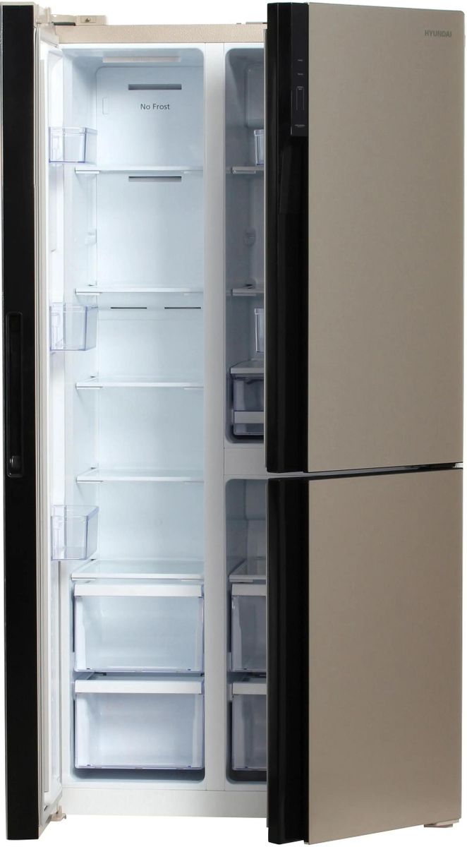 Холодильник Hyundai CS6073FV шампань стекло трехкамерный 329/223л морозилка сбоку
