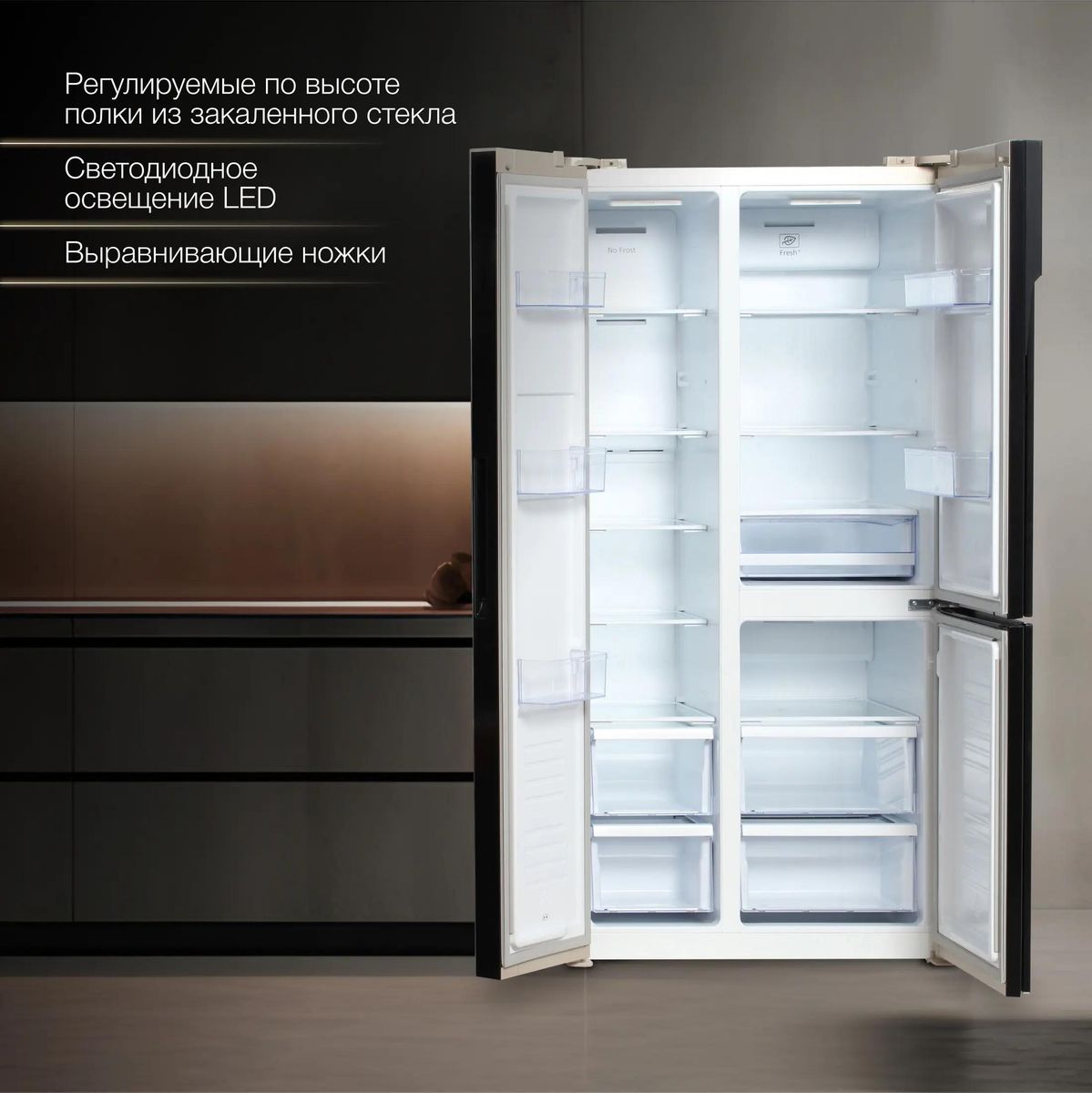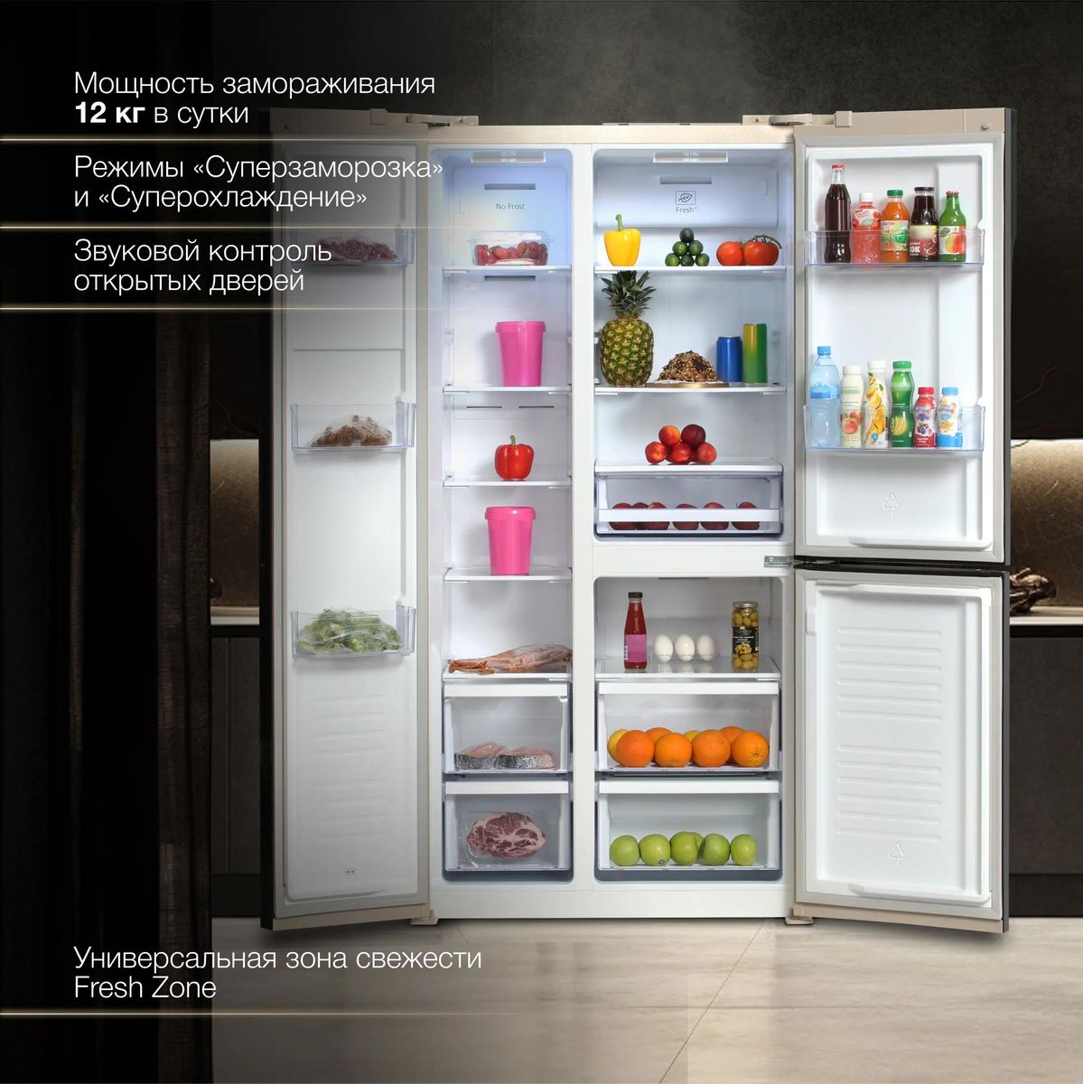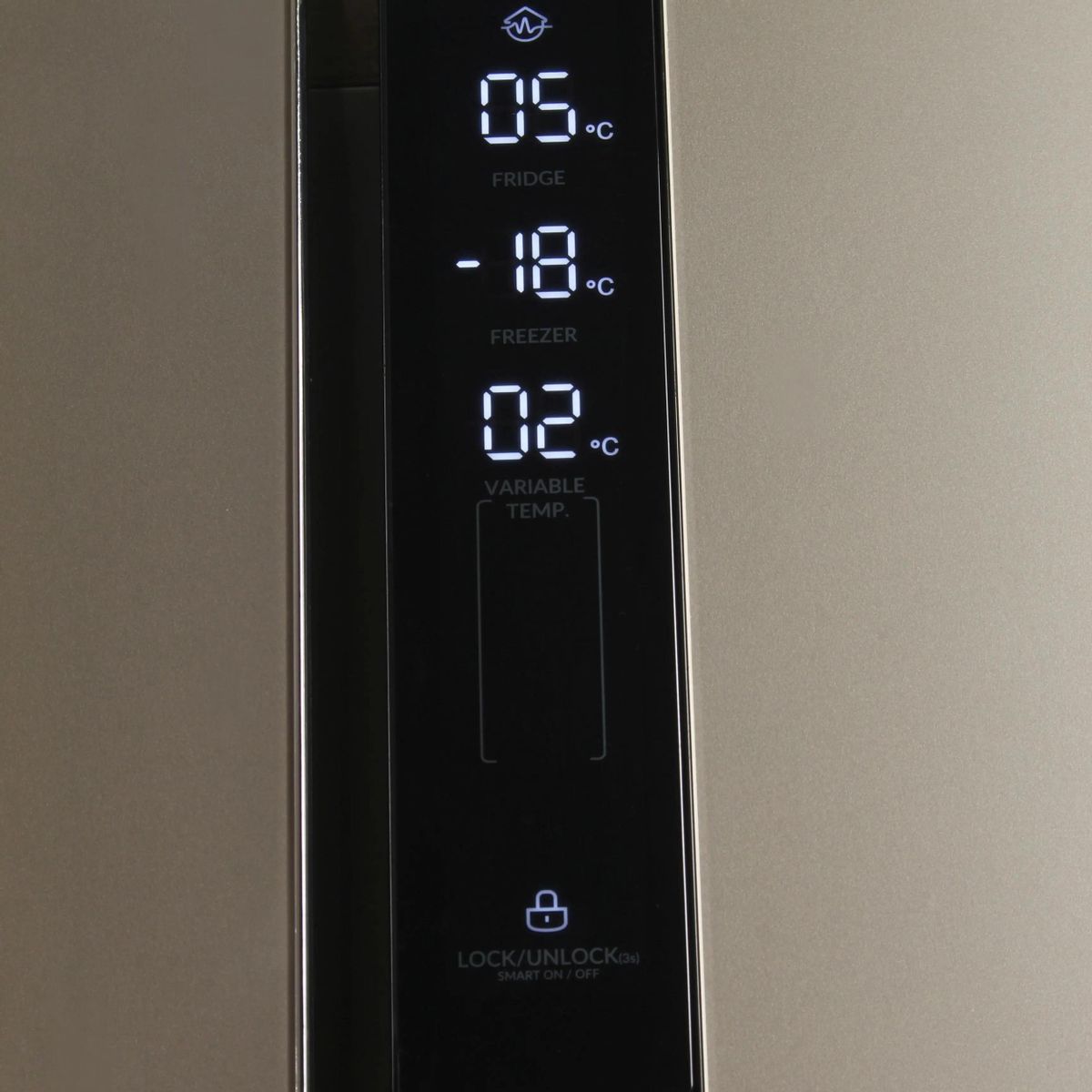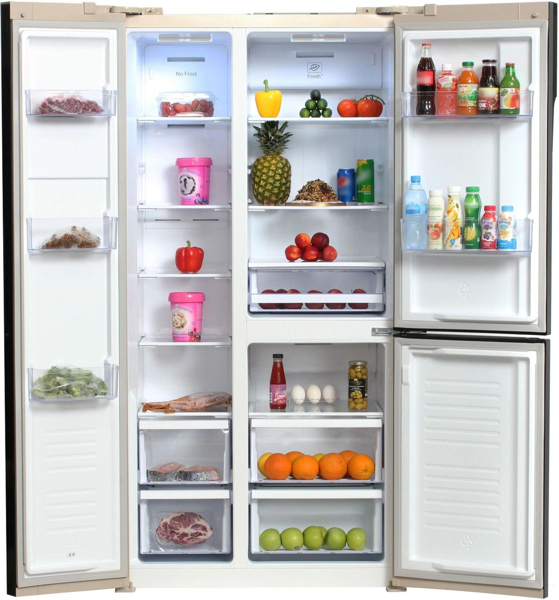 Холодильник Hyundai CS6073FV шампань стекло трехкамерный 329/223л морозилка сбоку