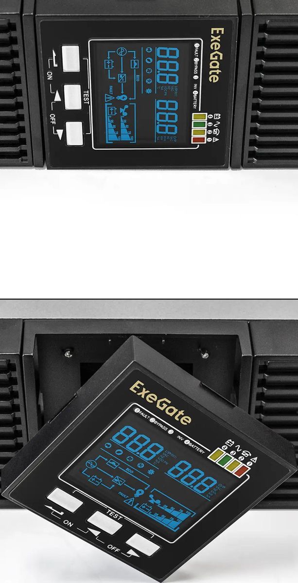 ИБП On-line ExeGate EP285647RUS PowerExpert ULS-2000.LCD.AVR.C13.USB.RS232.SNMP.2U <2000VA/2000W, On-Line, PF=1, LCD, 6*IEC-C13, RS232, USB, SNMP-slot, Rackmount 2U/Tower, Black>