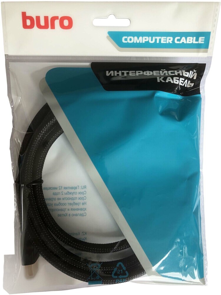 Характеристики Кабель аудио-видео Buro HDMI (m)/HDMI (m) 2м. черный (HDMI-V1.4-2MC)