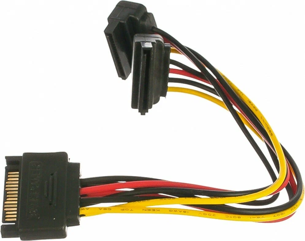 Кабель Gembird/Cablexpert Кабель питания SATA, 15см, 15pin (M)/2x15pin(F) на 2 SATA устройства, угловой разъем (CC-SATAM2F-02)