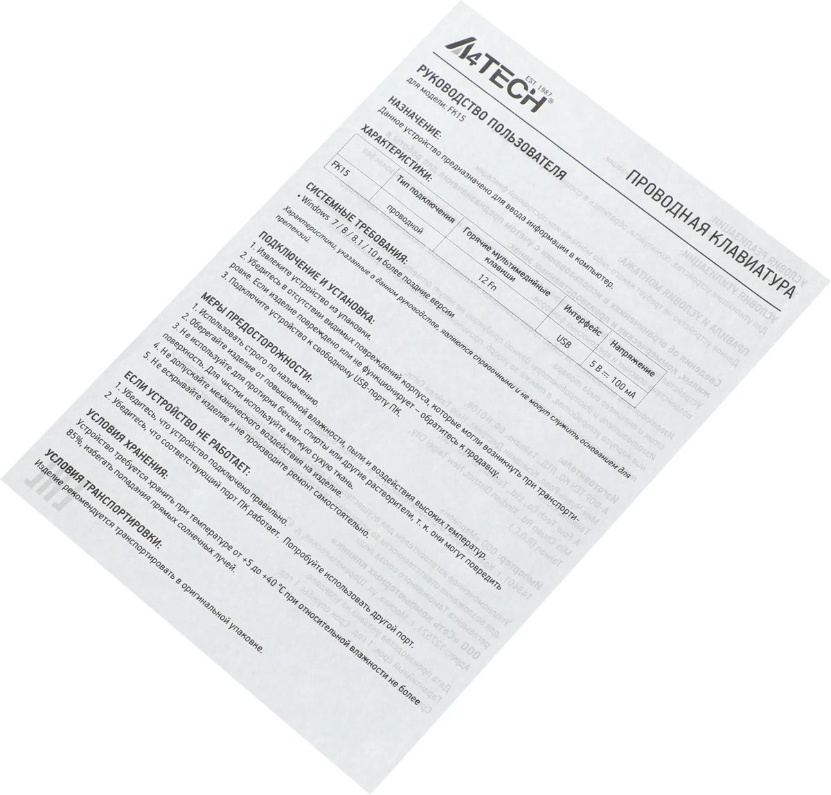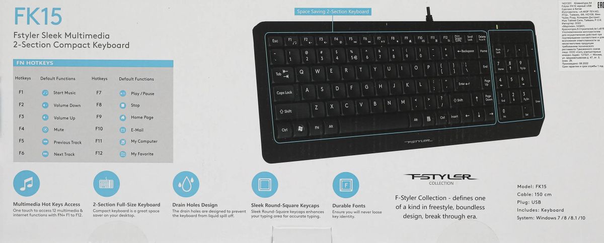 Характеристики Клавиатур A4 Tech Fstyler FK15 черный