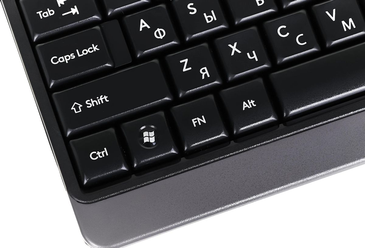 Цвет клавиатуры – черный. Это практичное цветовое решение: любые загрязнения на темном фоне малозаметны. Материал корпуса клавиатуры – устойчивый к ударным нагрузкам и другим механическим воздействиям пластик.