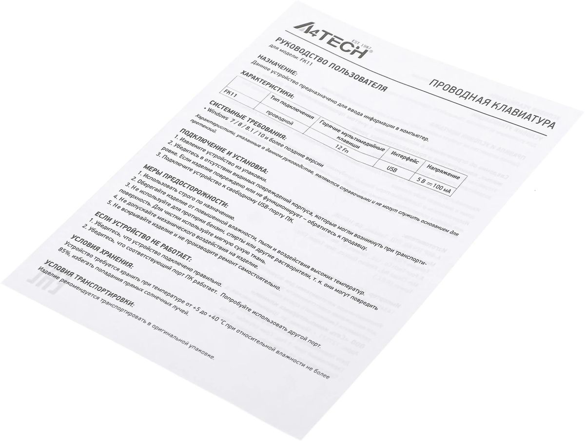 Характеристики Клавиатура проводная A4Tech Fstyler FK11