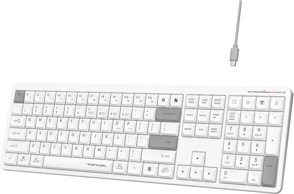 Характеристики Клавиатура A4Tech Fstyler FBX55C белый USB беспроводная BT/Radio slim Multimedia (FBX55C)