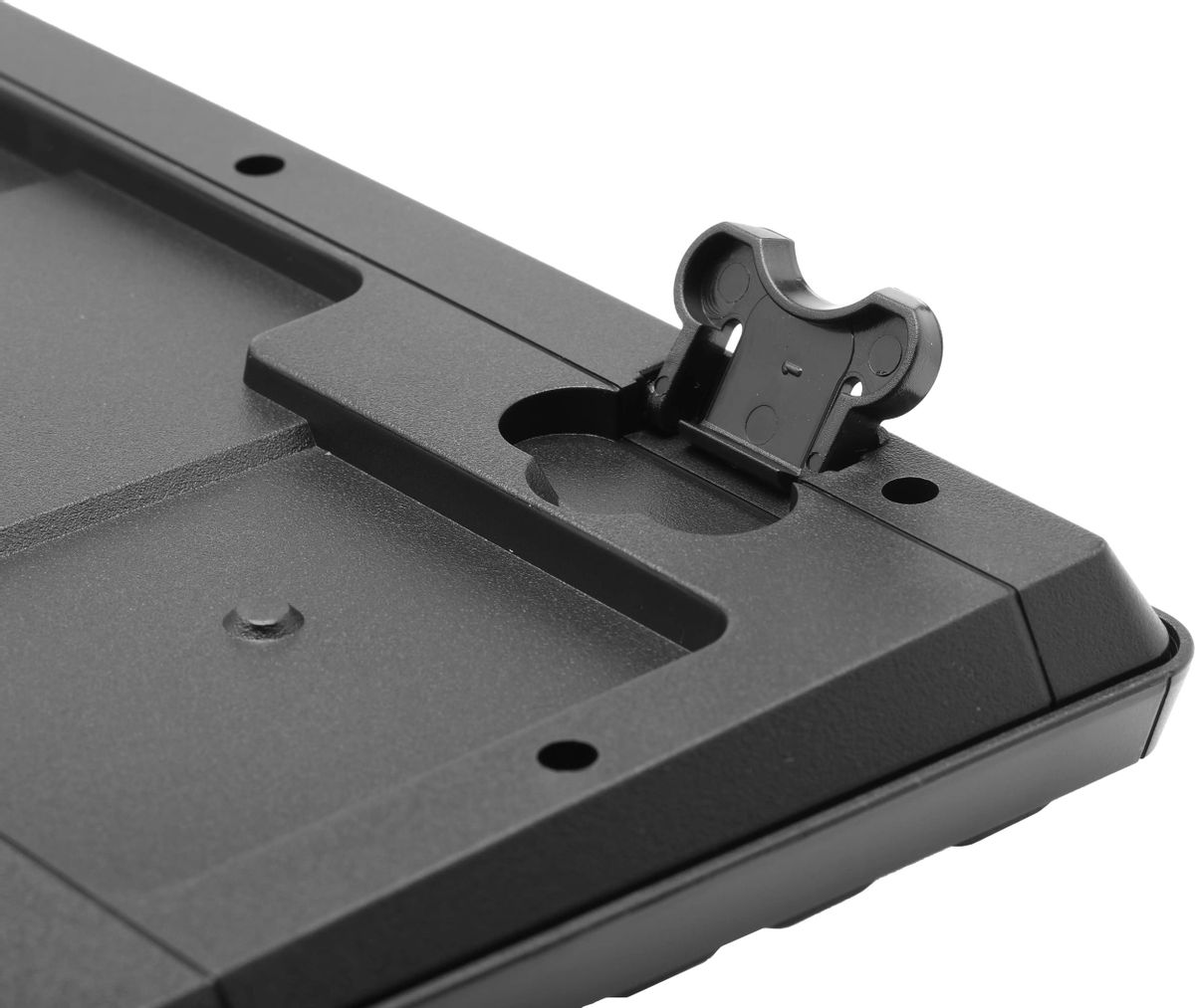 Подключение к совместимому устройству осуществляется через USB-кабель длиной 1,8 метра. Клавиатура включает 104 клавиши с поддержкой русской и английской раскладки. Устройство относится к мембранному типу — нажатие фиксируется при полном ходе клавиши.
