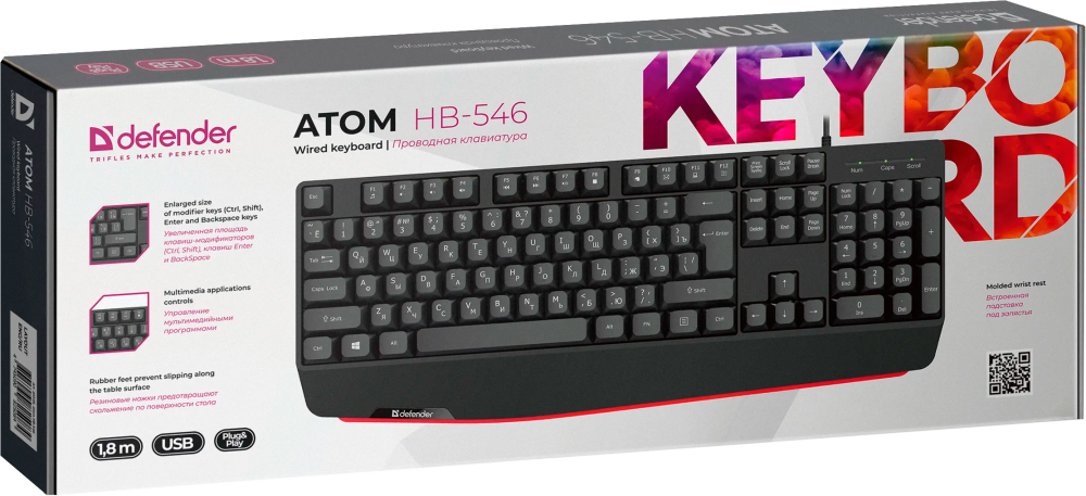 Клавиатура DEFENDER ATOM HB-546 RU BLACK 45546 1.8M