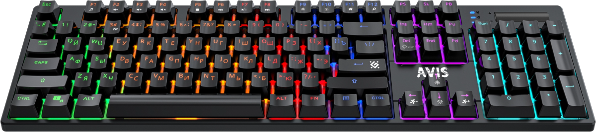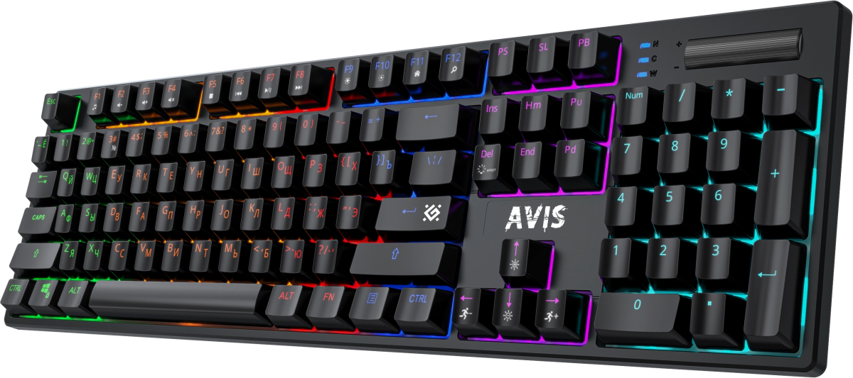 Характеристики Клавиатура DEFENDER Avis GK-312 RU,черн,104+FN,радуж,SNK Red (45312)