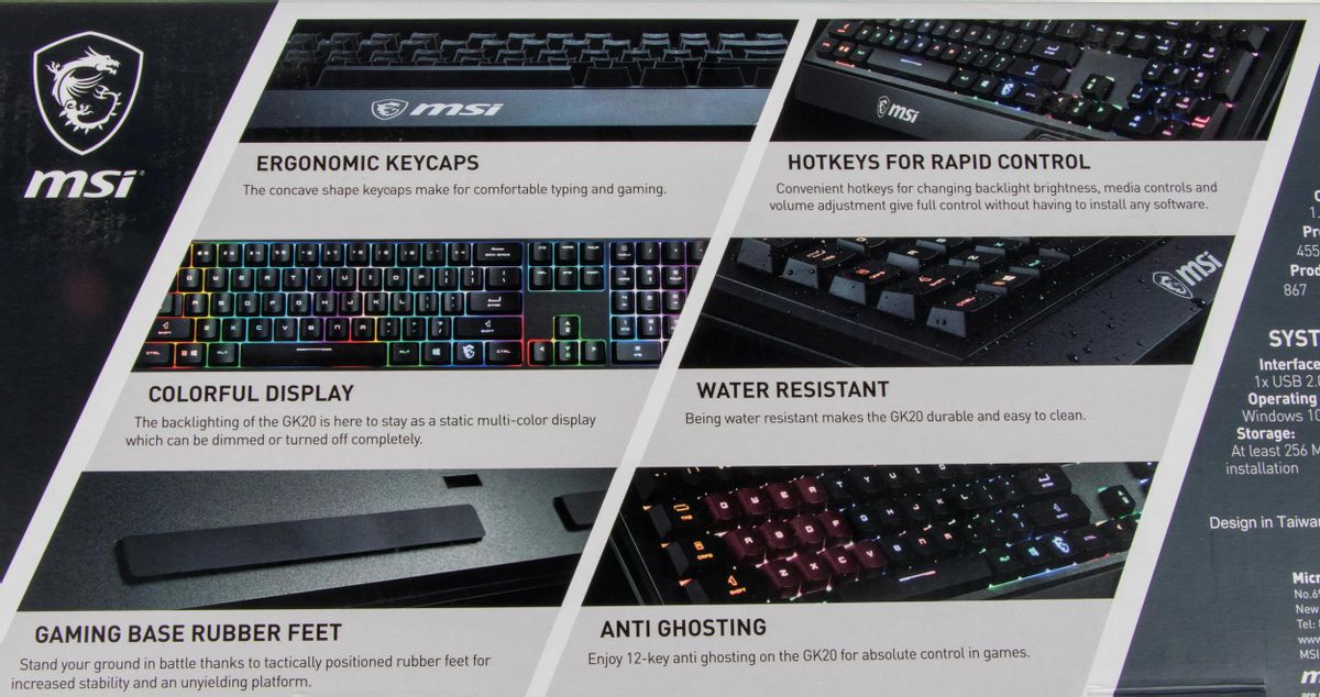 Характеристики Клавиатура MSI VIGOR GK20 RU черный USB Multimedia for gamer LED (подставка для запястий)
