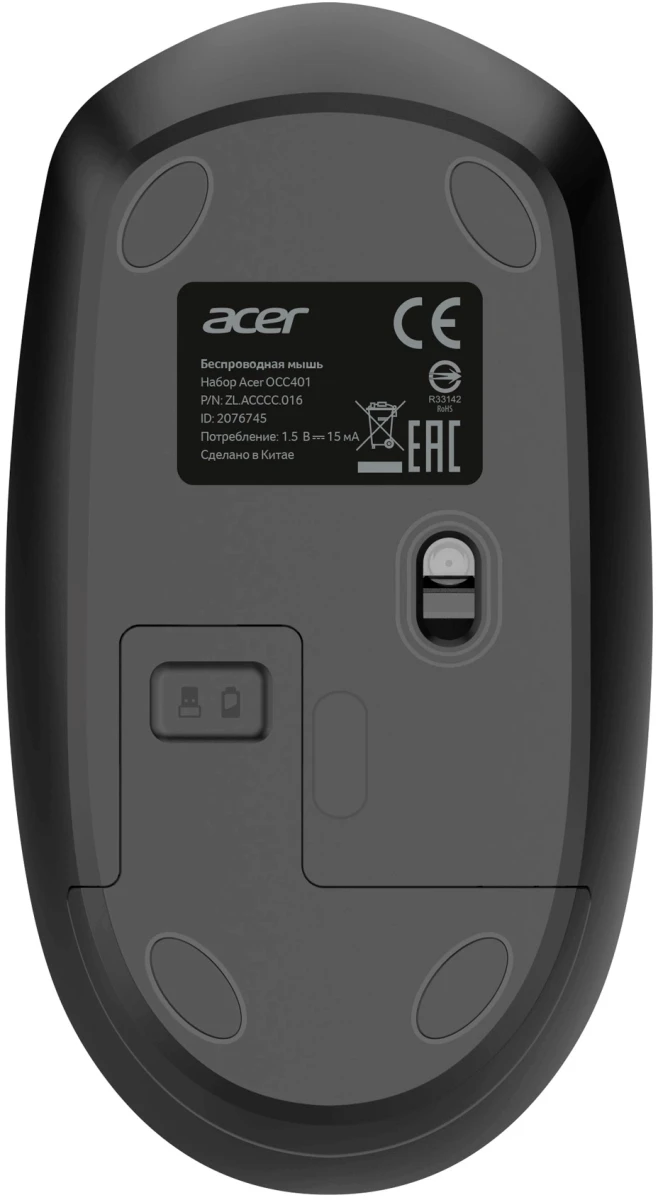 Характеристики Клавиатура + мышь Acer OCC401 клав:черный мышь:черный USB беспроводная (ZL.ACCCC.016)