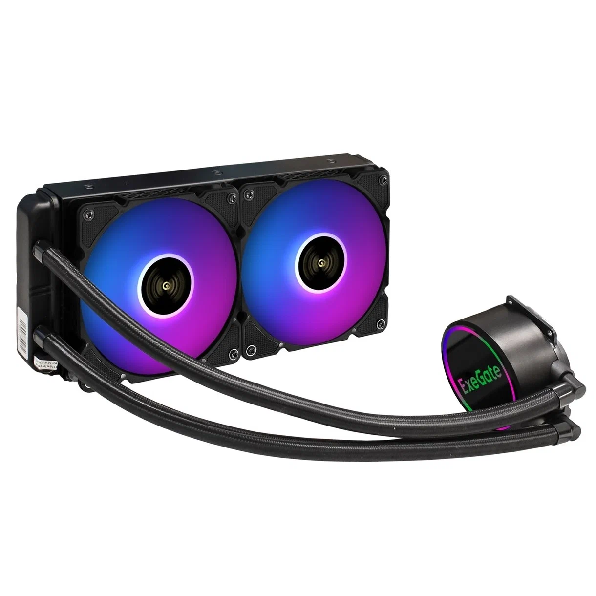 Комплект водяного охлаждения ExeGate EX293458RUS BlackWater-240.PWM.ARGB (3 PIN 5V ADDRESSABLE RGB подсветка, LGA2066/2011/1366/1150/1151/1155/1156/1200/1700/AM4/FM1/FM2/FM2+/AM2/AM2+/AM3/AM3+, TDP 220W, Fan 120mm, PWM, 800-2000RPM, Hydro bearing, 4pin, 1