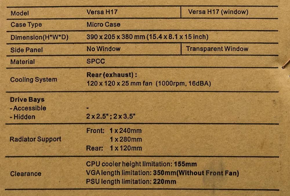 Описание Корпус Thermaltake Versa H17 Black (CA-1J1-00S1NN-00)