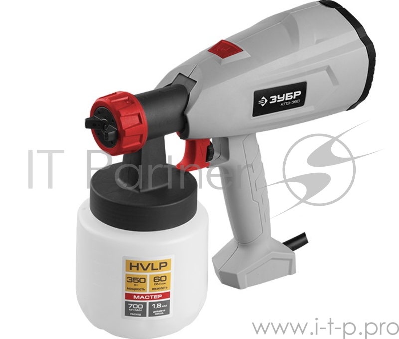 Краскопульт ЗУБР МАСТЕР электрический, 350 Вт, HVLP, 0.8 л, краскоперенос 0-800 мл/мин, вязкость краски 60 DIN/сек, сопло 1.8мм
