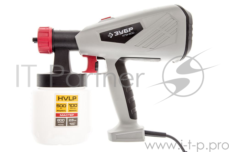 Краскопульт ЗУБР МАСТЕР электрический, 500 Вт, HVLP, 0.8 л, краскоперенос 0-800 мл/мин, вязкость краски 100 DIN/сек, сопло 2.6мм