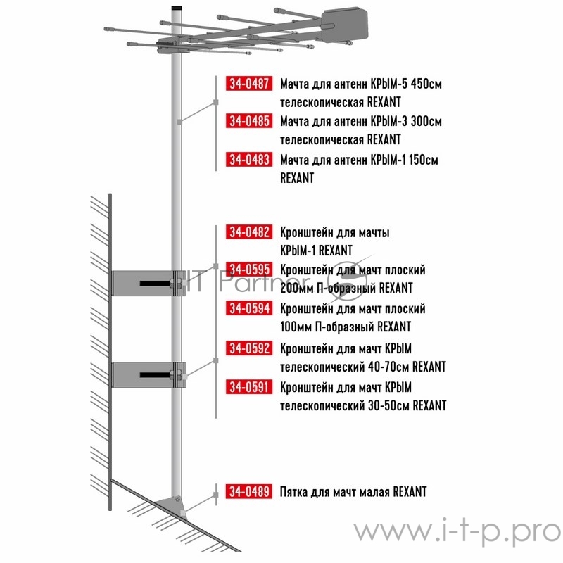 Характеристики Кронштейн для мачт «Крым» телескопический 40-70 см REXANT