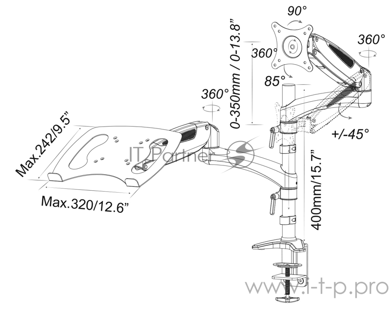 Характеристики Кронштейн для монитора/ноутбука Cactus CS-VM-LH08-AL серебряный 13-27 макс.8кг настольный поворот и наклон
