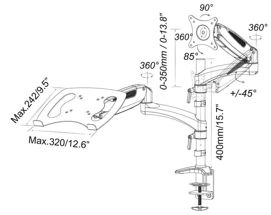 Характеристики Кронштейн для монитора/ноутбука Cactus CS-VM-LH08-BK черный 13"-27" макс.8кг настольный поворот и на