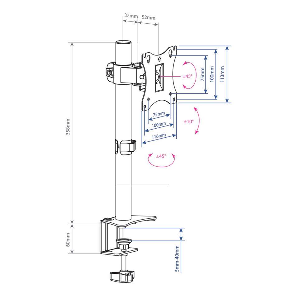 Характеристики Кронштейн для мониторов Arm Media LCD-T01 15"-32" черный