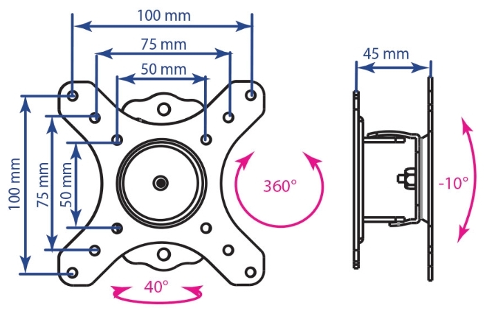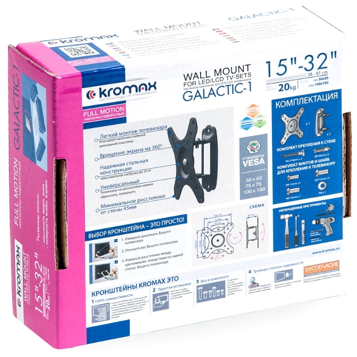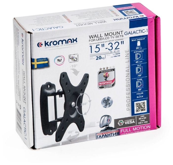 Характеристики Кронштейн на стену Kromax GALACTIC-1 черный