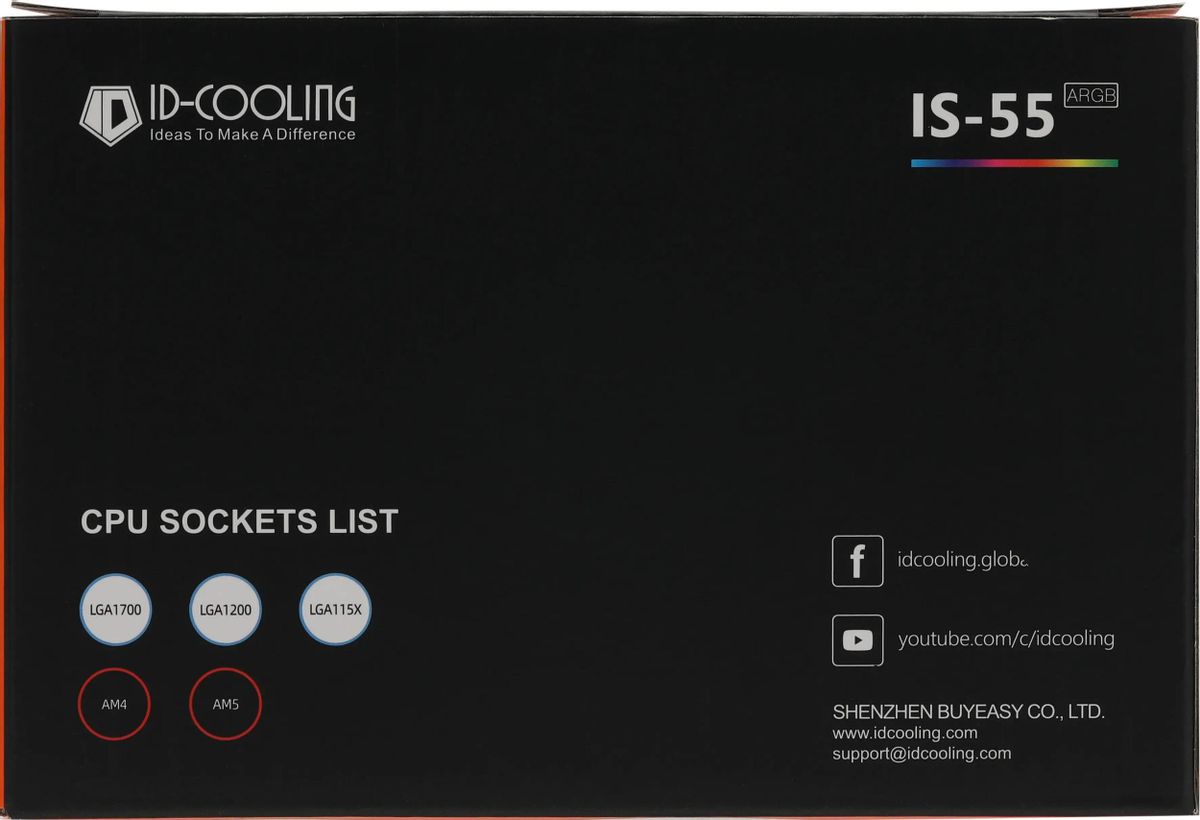 Кулер ID-COOLING IS-55 ARGB LGA1700/1200/115X/AM5/AM4 низкопрофильный высота 55mm (27шт/кор, TDP 125W, PWM, 5 тепл.трубок + медная база, FAN 120mm, черный) BOX