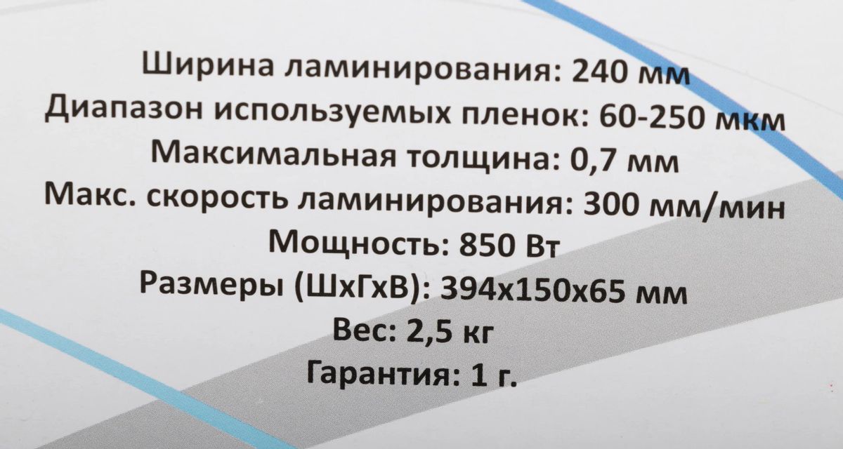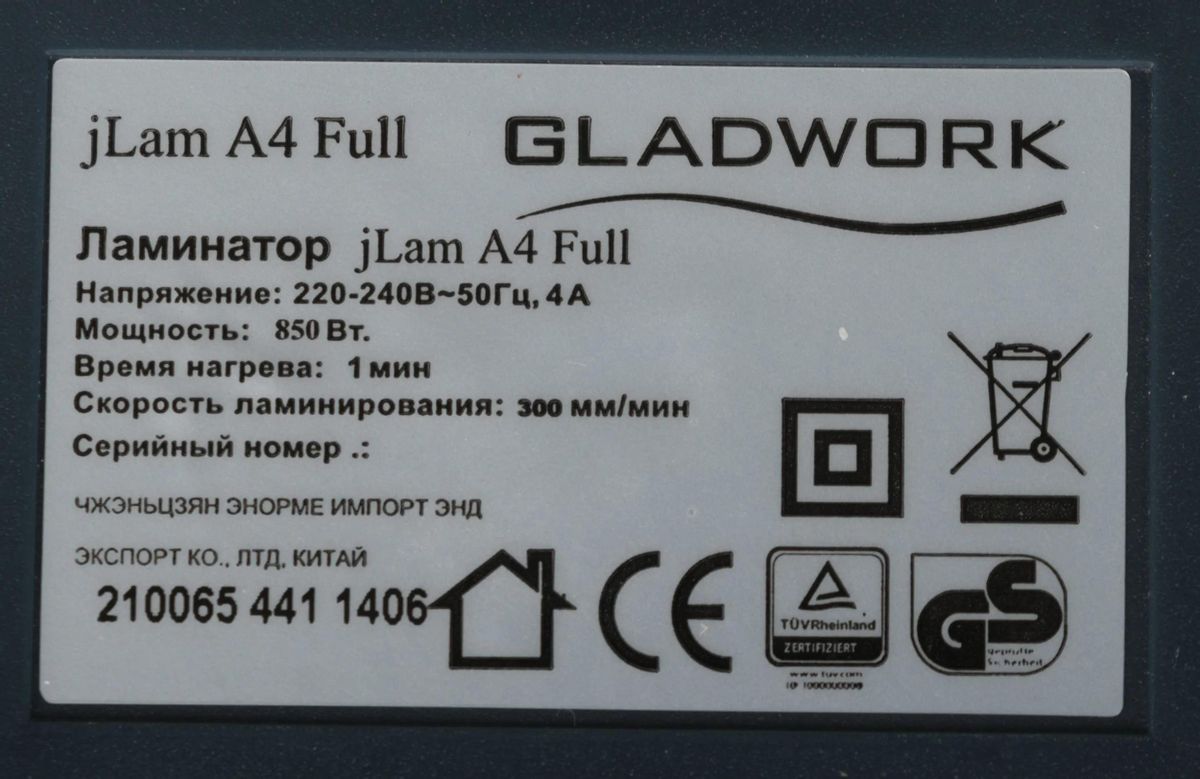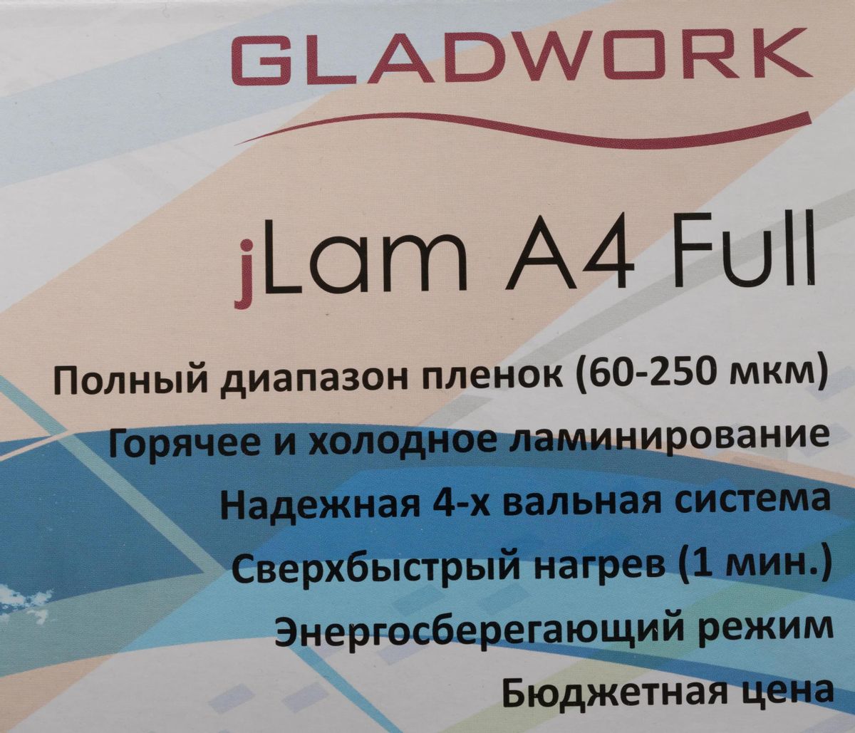 Характеристики Ламинатор Gladwork jLAM Full A4 (60-250мкм) 30см/мин (4вал.) хол.лам. лам.фото