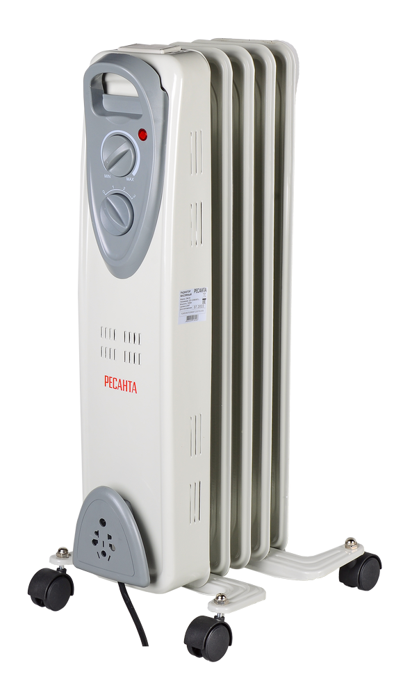 Масляный радиатор Ресанта предназначен для обогрева воздуха и создания комфортной атмосферы в холодное время года. В металлическом корпусе находится масло, нагреваемое до высокой температуры при помощи нагревательного элемента. Далее радиатор отдает тепло помещению. Масляный радиатор оснащен термостатом, что позволяет ему автоматически поддерживать в помещении заданную пользователем температуру. Существенным плюсом является и то, что он обладает низкой температурой корпуса, благодаря чему практически не выжигает кислород в помещении.