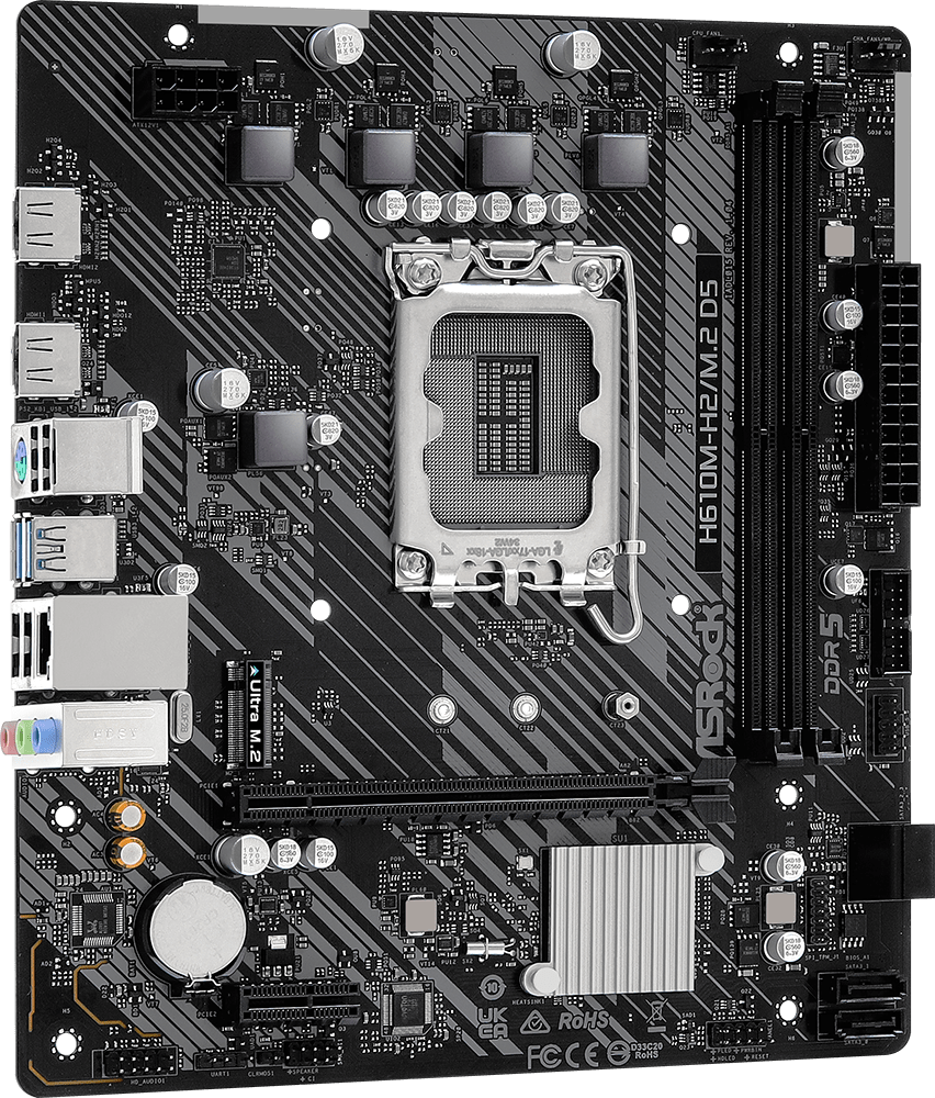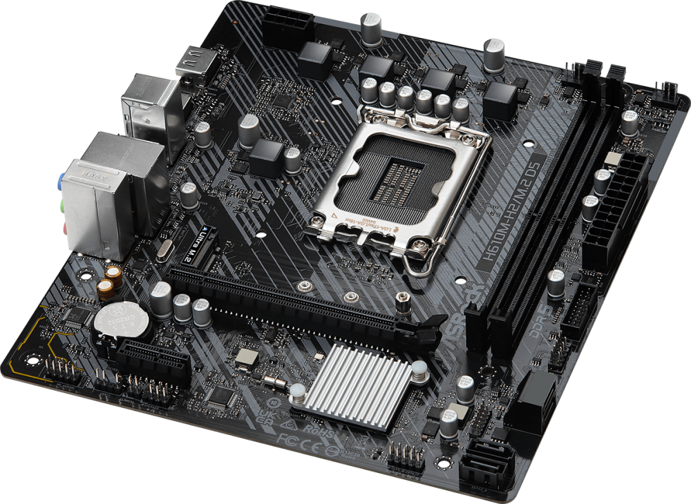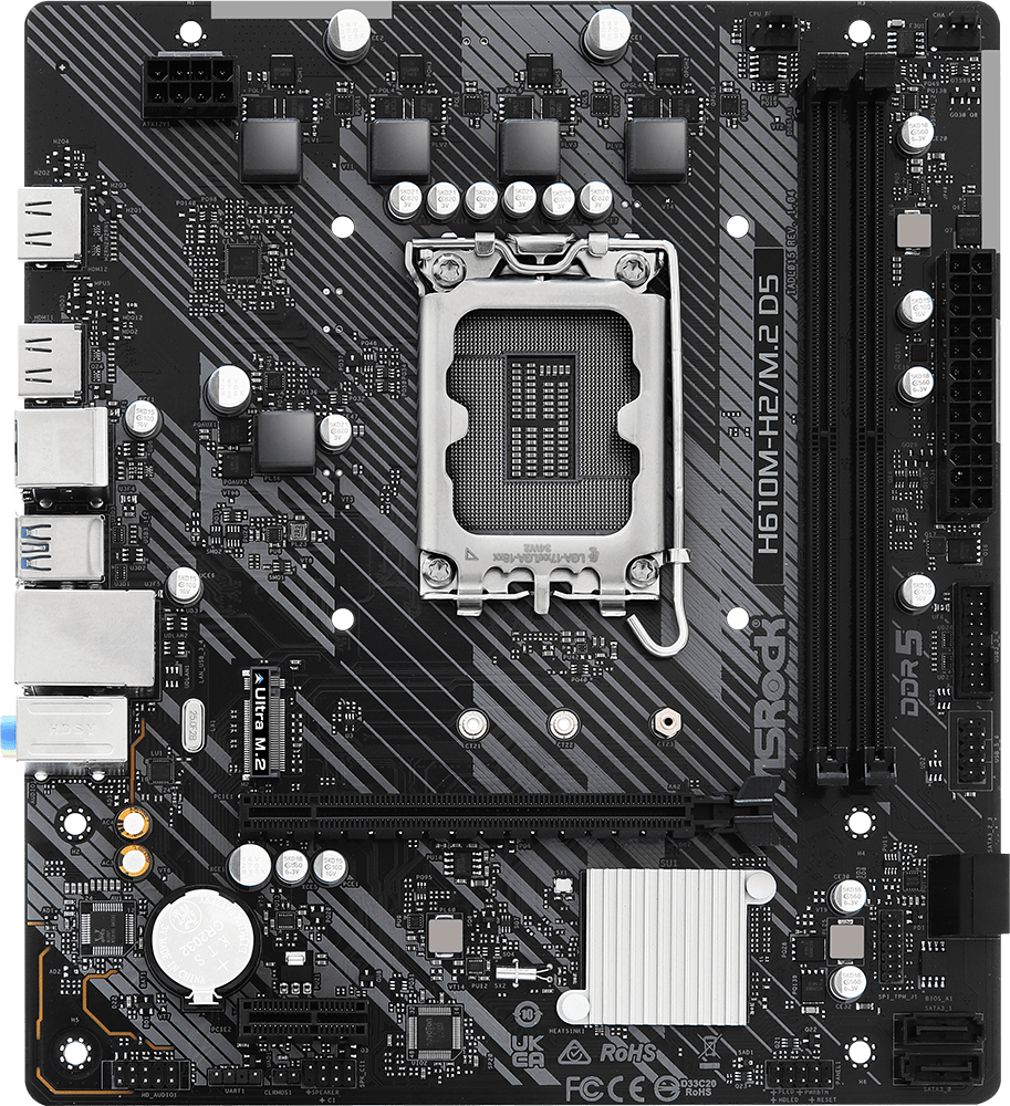 Материнская плата ASRock H610M-H2/M.2 D5, Socket 1700, Intel®H610, 2xDDR5-4800, HDMI+HDMI, 1xPCI-Ex16, 1xPCI-Ex1, 4xSATA3, 1xM.2, 8Ch Audio, GLan, (4+2)xUSB2.0, (2+2)xUSB3.2, 1xPS/2, mATX, RTL