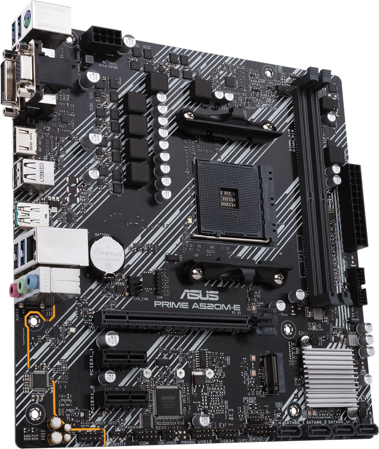 Материнская плата ASUS PRIME A520M-E/CSM, AM4, AMD A520, 2xDDR4, 4xSATA, 1xM.2, 1xPCI-E 3.0 x16, 2xPCI-E x1, 1xDVI-D, 1xHDMI, 1xVGA, 1x 1Gb LAN, 1xUSB-A 3.2 Gen 2, 2xUSB-A 2.0, 4xUSB-A 3.2 Gen 1, 3x3.5 мм, 7.1, Micro-ATX