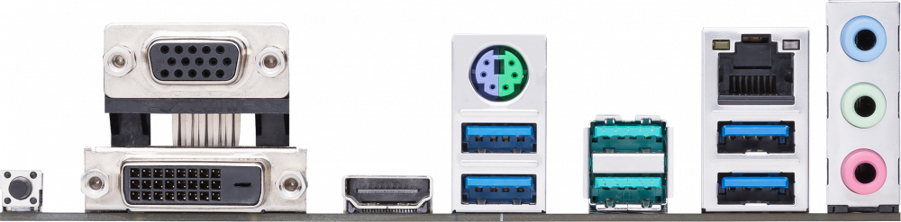 - 12 USB, выход S/PDIF, 1xCOM, D-Sub, DVI, HDMI, Ethernet, PS/2 (клавиатура), PS/2 (мышь)