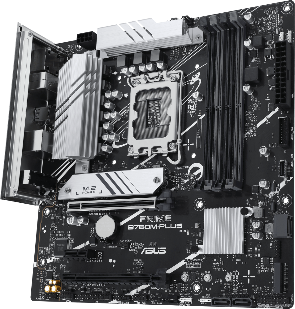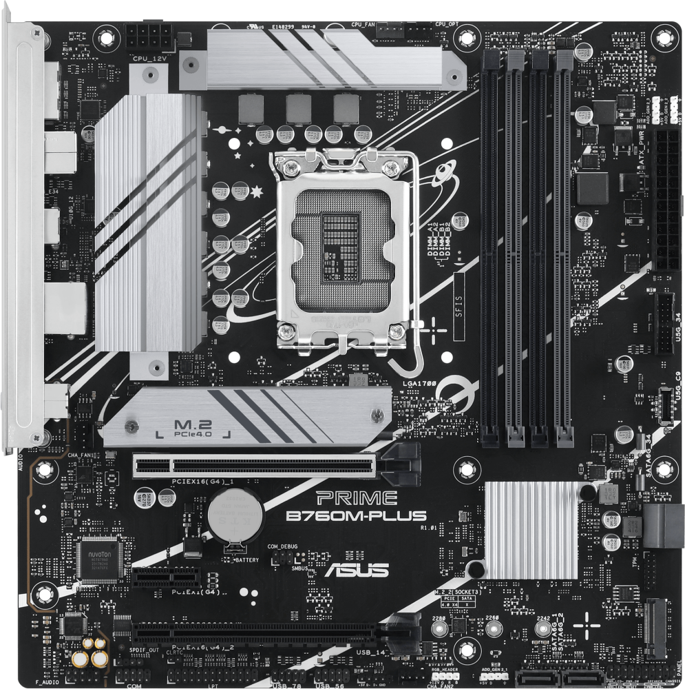 Характеристики Материнская плата Asus PRIME B760M-PLUS Soc-1700 Intel B760 4xDDR5 mATX AC`97 8ch(7.1) 2.5Gg RAID+HDMI+DP