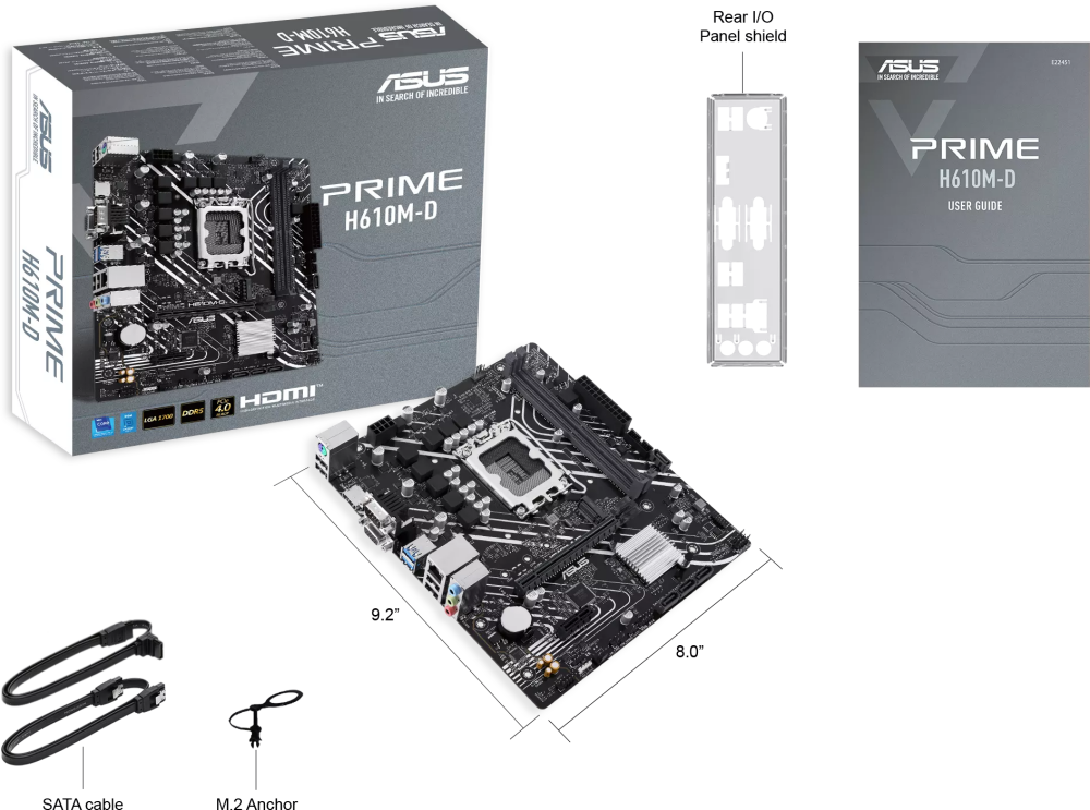 Характеристики Материнская плата Asus PRIME H610M-D D4 Soc-1700 Intel H610 2xDDR4 mATX AC`97 8ch(7.1) GbLAN+VGA+HDMI