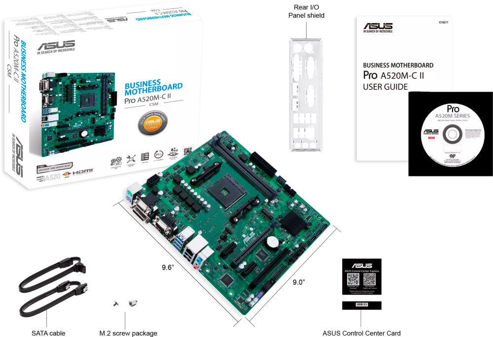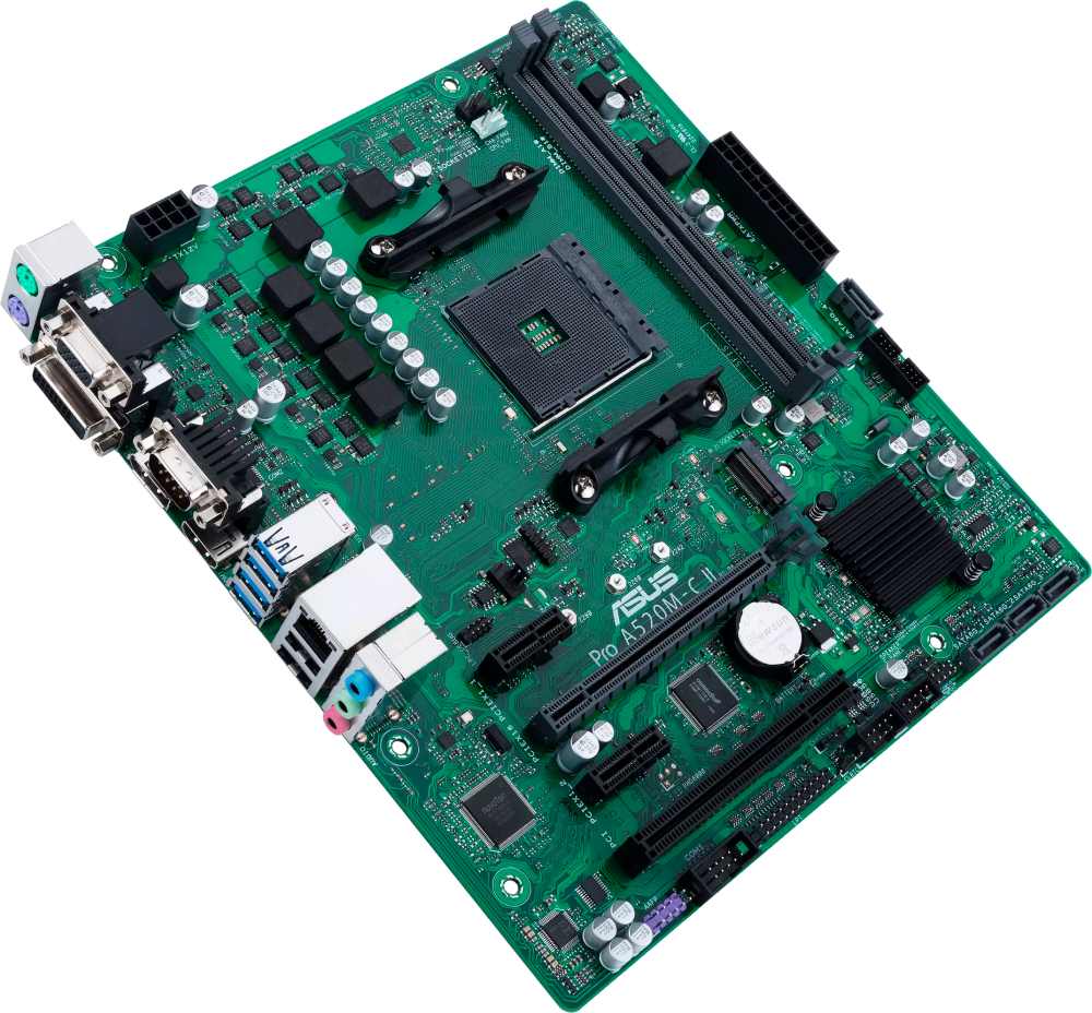 Материнская плата Asus PRO A520M-C II/CSM Soc-AM4 AMD A520 2xDDR4 mATX AC`97 8ch(7.1) GbLAN RAID+VGA+DVI+HDMI+DP